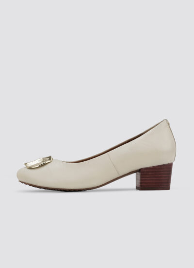 Add a refined touch to your wardrobe with these elegant Flora pump shoes. Featuring a smooth upper and a comfortable block heel, they strike the perfect balance between style and support. A unique metallic detail on the toe adds a modern twist to this timeless design, making them ideal for both workdays and special occasions. These pumps are the perfect blend of classic charm and contemporary flair.