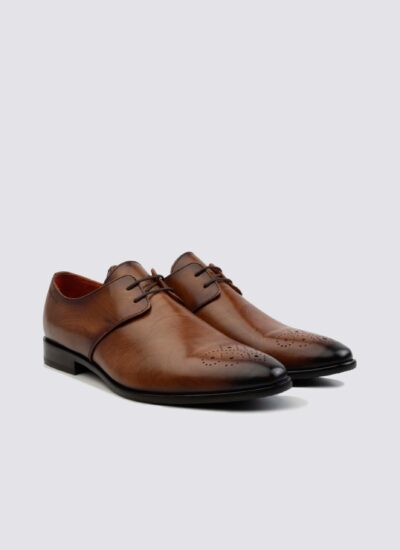 Indulge in timeless style with the Jenson lace-ups: featuring a classic design with a hand-painted upper done by skilled artisans. They are further heightened by two-tone finishes and captivating brogue detailing, adding an intriguing touch to the overall design. Comfort is optimized with the cushioned leather footbed, complemented by a durable TR sole for lasting support. Versatile and chic, this footwear effortlessly transitions from casual to office wear and is equally suited for special occasions.