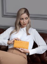 For the polished woman on-the-go, the sleek Palmer wallet adds a touch of glamour. Crafted from luxurious ostrich leather and featuring sleek card slots inside, it imparts any ensemble with an elevated classic allure.