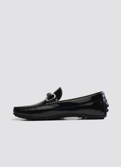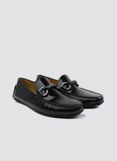 Elevate your personal style with Tyler driver- This premium leather footwear featuring a high gloss, patent finish and a distinctive chunky saddle design. The rubber sole ensures extra grip, while its flexible construction adds comfort to your every step. These drivers convey a bold fashion statement with an impeccable showcase of luxury paired with comfort.